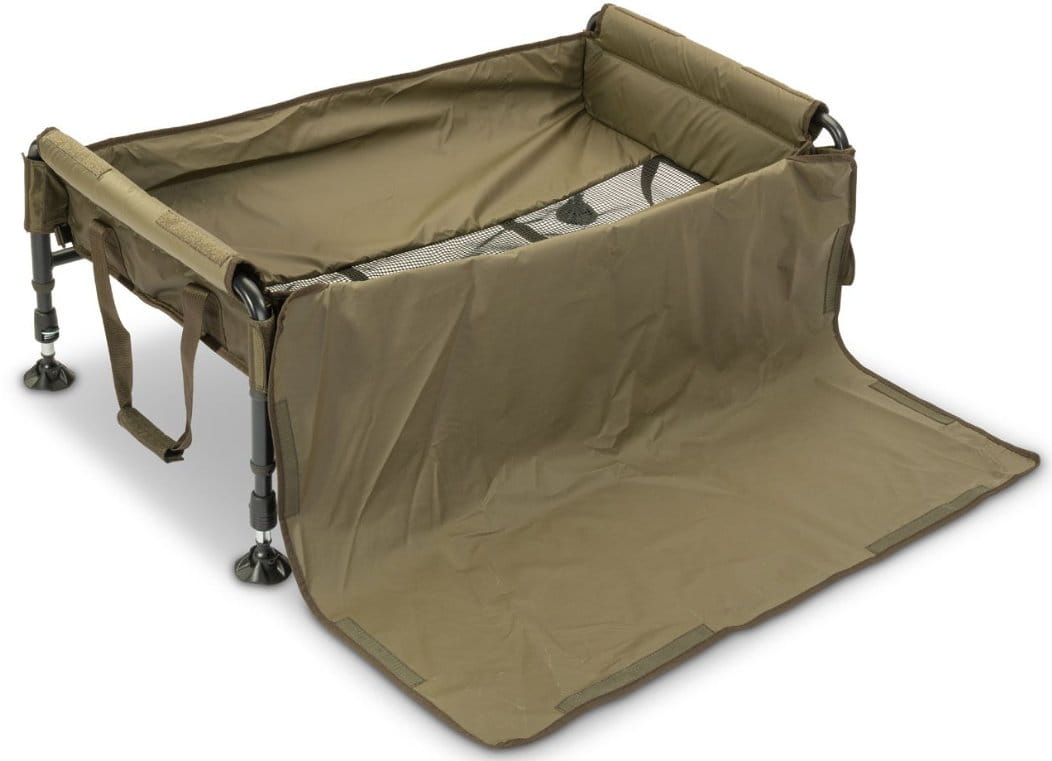 Speed Craddle spełnia wszystkie kryteria, jakich karpiarz oczekuje od krótkiego połowu. Niewielkie, lekkie wymiary transportowe zapewniają maksymalny komfort, a maty można rozłożyć w mgnieniu oka. W tym celu została podzielona na pół i można ją również złożyć w tym miejscu dzięki sprytnemu systemowi zatrzaskowemu. Nogi maty wyposażone są w wysuwane, przegubowe nóżki, które dopasowują się do terenu i zapobiegają zapadaniu się w miękkim podłożu. Odpływ pozwala na szybkie odprowadzenie nadmiaru wody. Pokrycie na rzep, zapobiegające wyskakiwaniu ryb podczas przesuwania maty do odhaczania, dopełnia perfekcji Speed Craddle. Dzięki paskom na rzepy po bokach matę można zminimalizować do transportu.