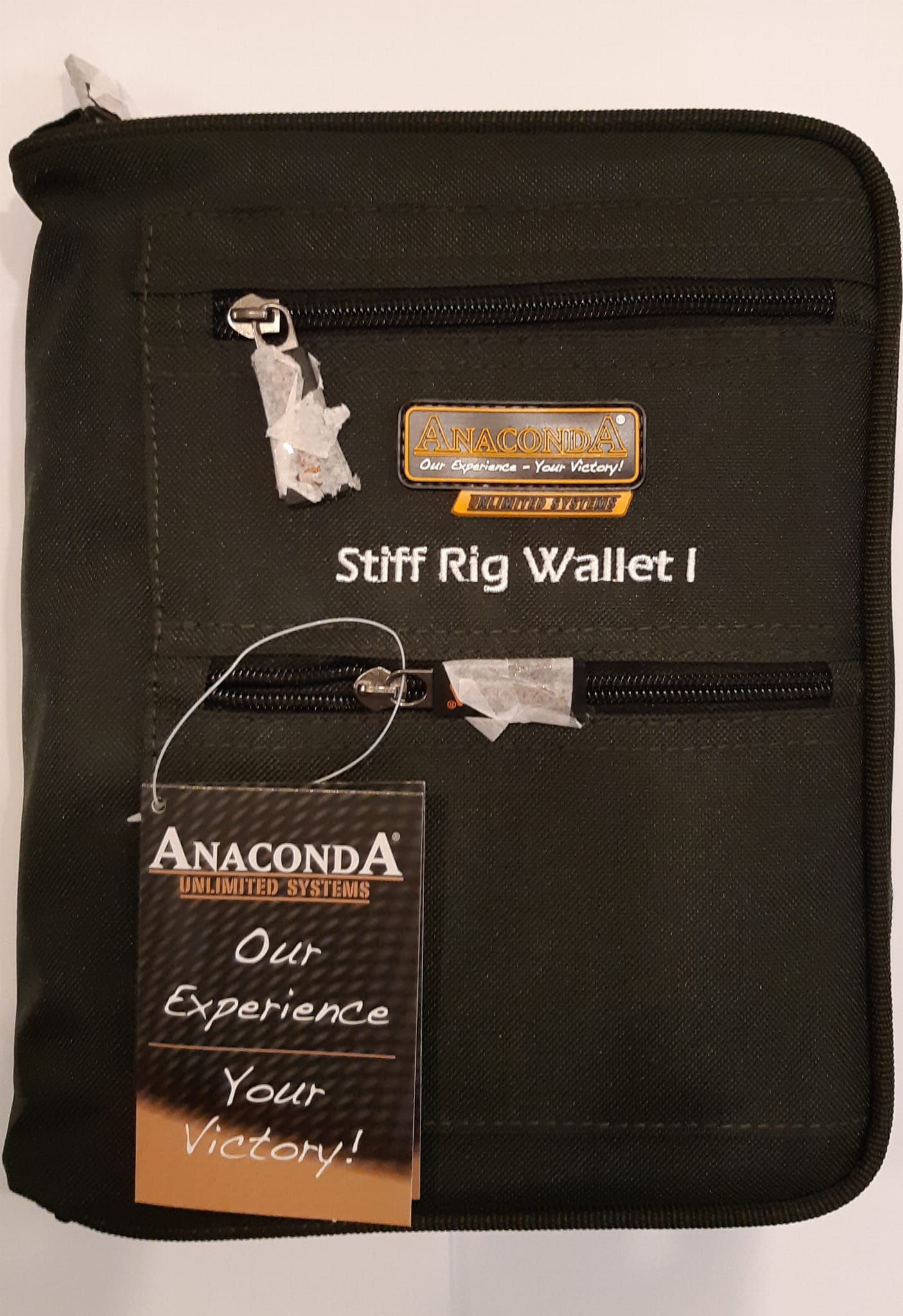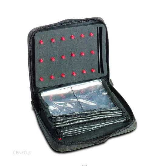 Stiff Rig Wallet I wyposażony jest w 8 przedziałów i dwie kieszenie na drobiazgi. Dwa wkłady z twardej pianki mieszczą około 36 gotowych przyponów.