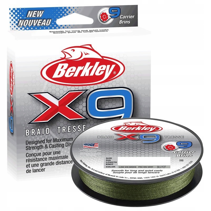 Berkley X9 Braid to klasyczna plecionka wykonana w 100% z włókien PE. 8-splotkowe plecionki są bardzo popularne, jednak dla firmy Berkley było to za mało, przeniosła tą tendencję na wyższy poziom, dodając dodatkowy splot. Dzięki temu X9 jest jeszcze bardziej mocny i niezawodny. Gładka powierzchnia zapewnia dalsze i cichsze rzuty.